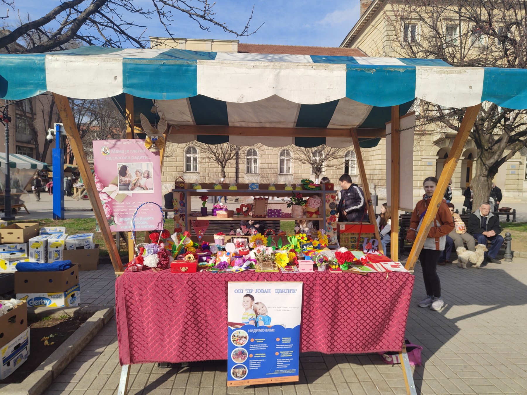 Поводом Дана жена, у оквиру осмомартовског програма који су припремили ученици наше школе, данас је организована продајна изложба на фонтани код цркве, од 11 до 17 часова.
