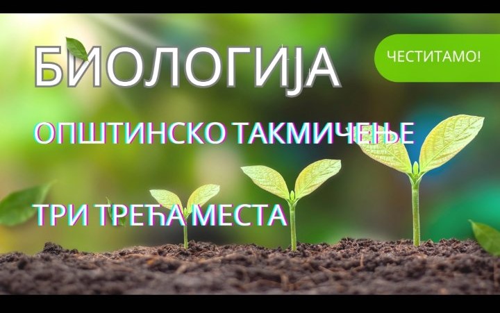 Дана 19. марта 2023. године, на Општинском такмичењу из Биологије наши ученици освојили су следећи успех и пласирали се на Окружно такмичење.