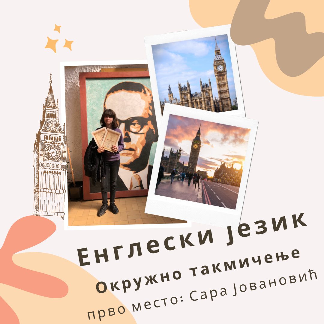 На Окружном такмичењу из Енглеског језика наша ученица Сара Јовановић 8/3 освојила је ПРВО место и пласирала се на Републичко такмичење.